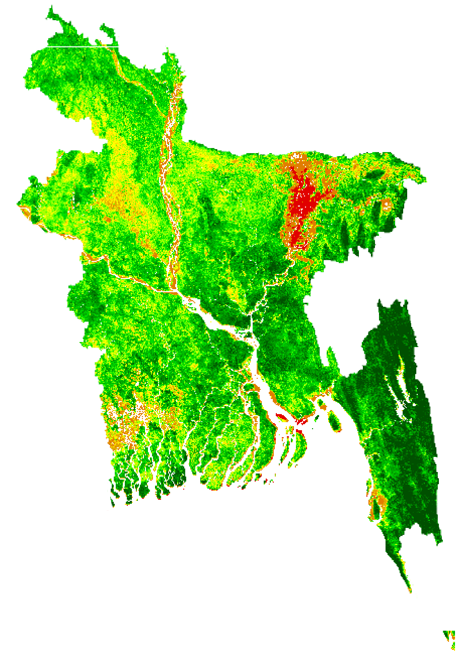 NOAA/VIIRS BLENDED NDVI composite for the week. No. 33 (10.08.2025 to 16.08.2025) over Agricultural regions of Bangladesh