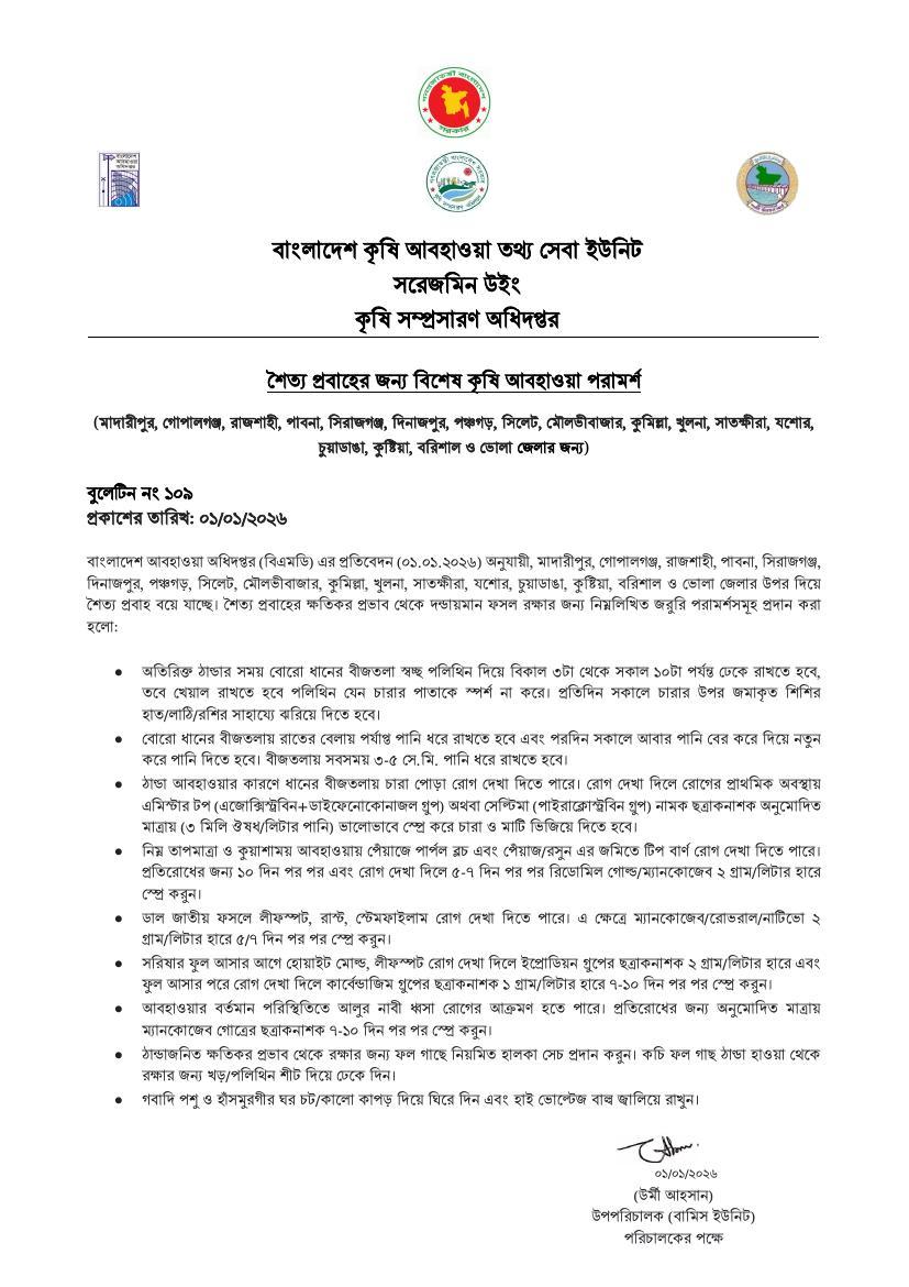 শৈত্য প্রবাহের জন্য বিশেষ কৃষি আবহাওয়া বুলেটিন