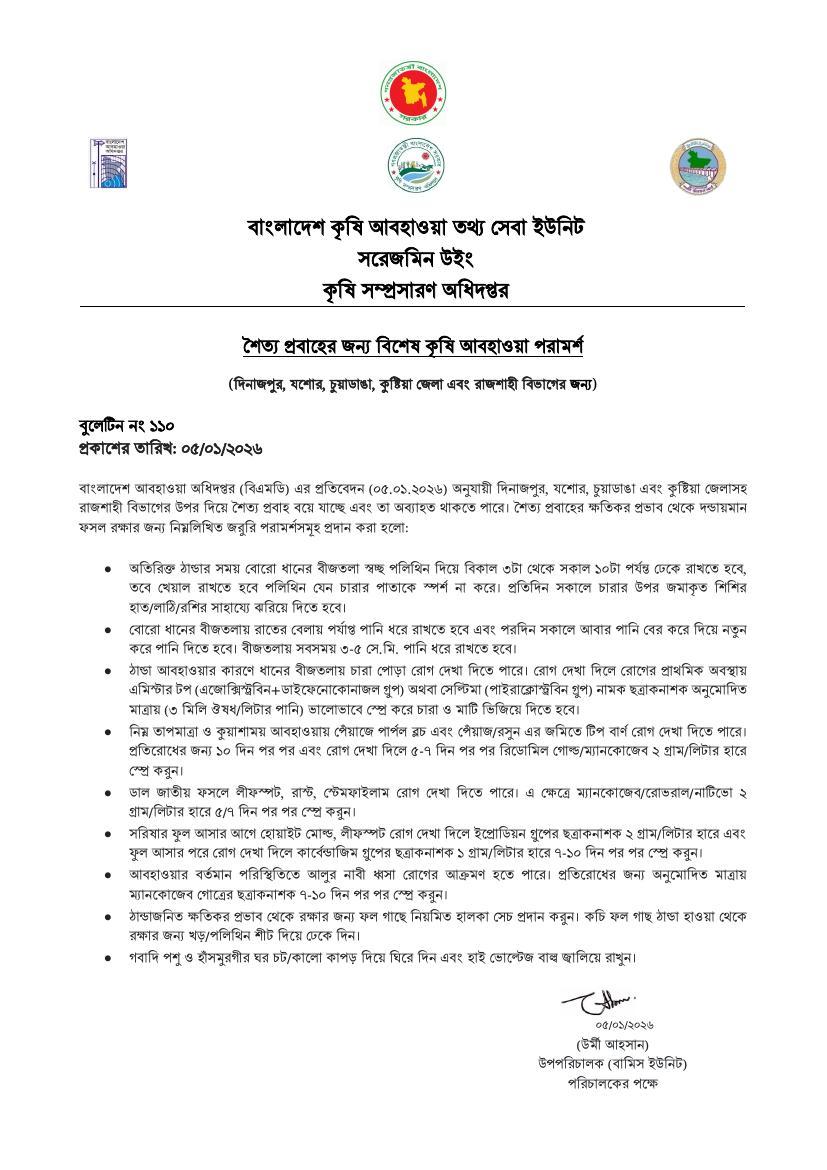 শৈত্য প্রবাহের জন্য বিশেষ কৃষি আবহাওয়া বুলেটিন ০৫.০১.২০২৬